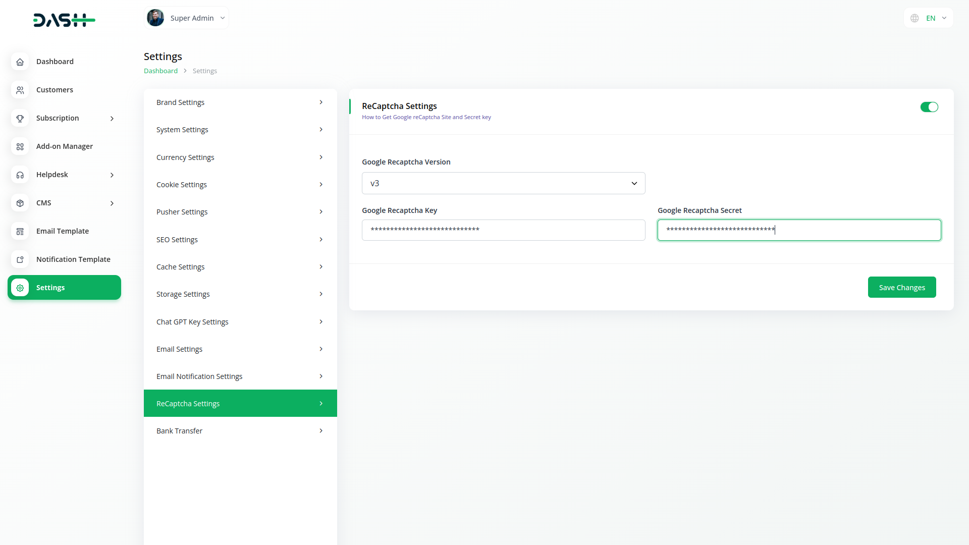 The Key pair consists of a site key and secret key. The site key is used to invoke reCAPTCHA service on your site or mobile application.