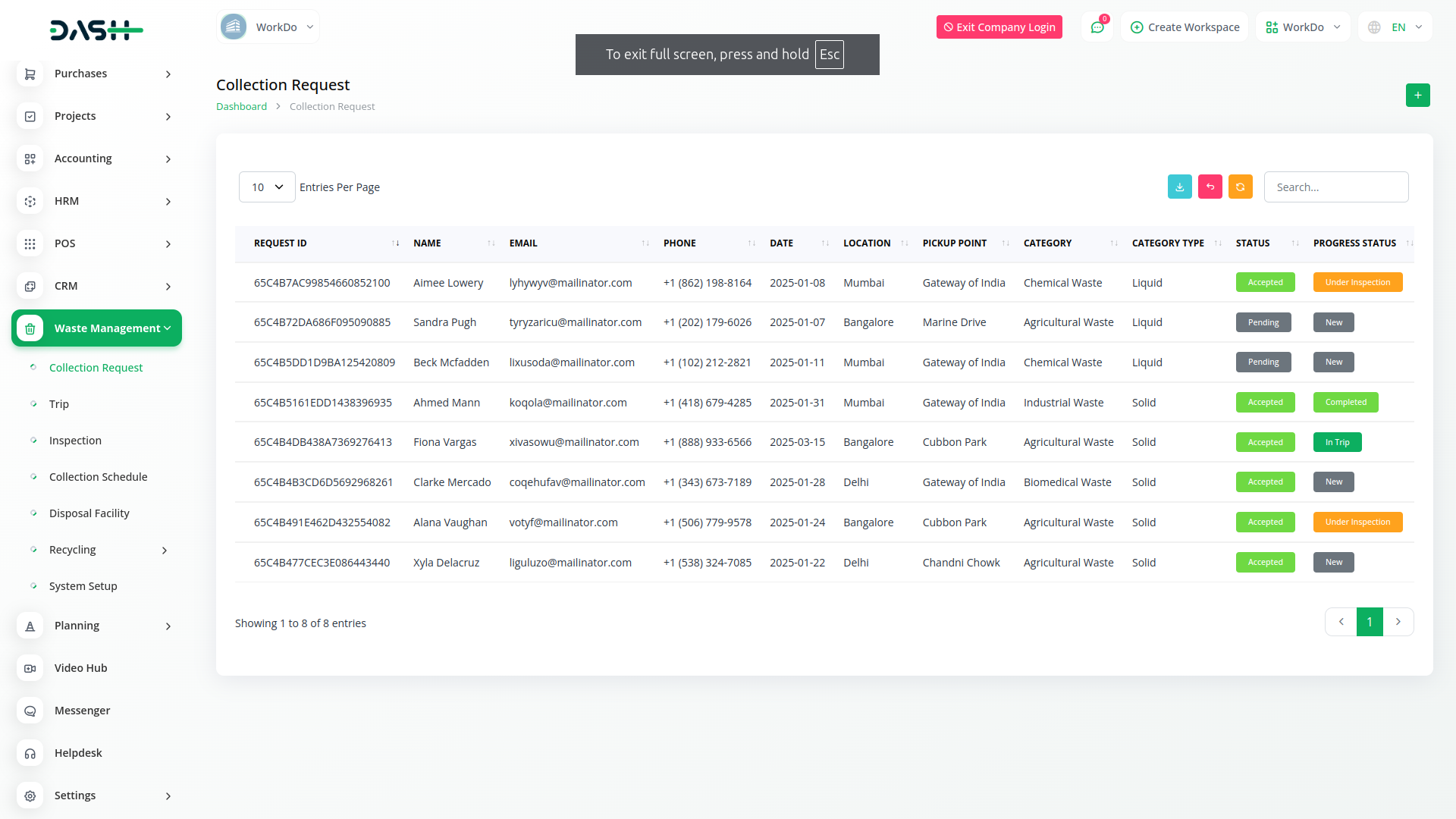 The Waste Management System module is a comprehensive solution designed to streamline waste collection processes for businesses and municipalities. From submitting collection requests to managing inspections, our module offers end-to-end functionality to optimize waste management operations.