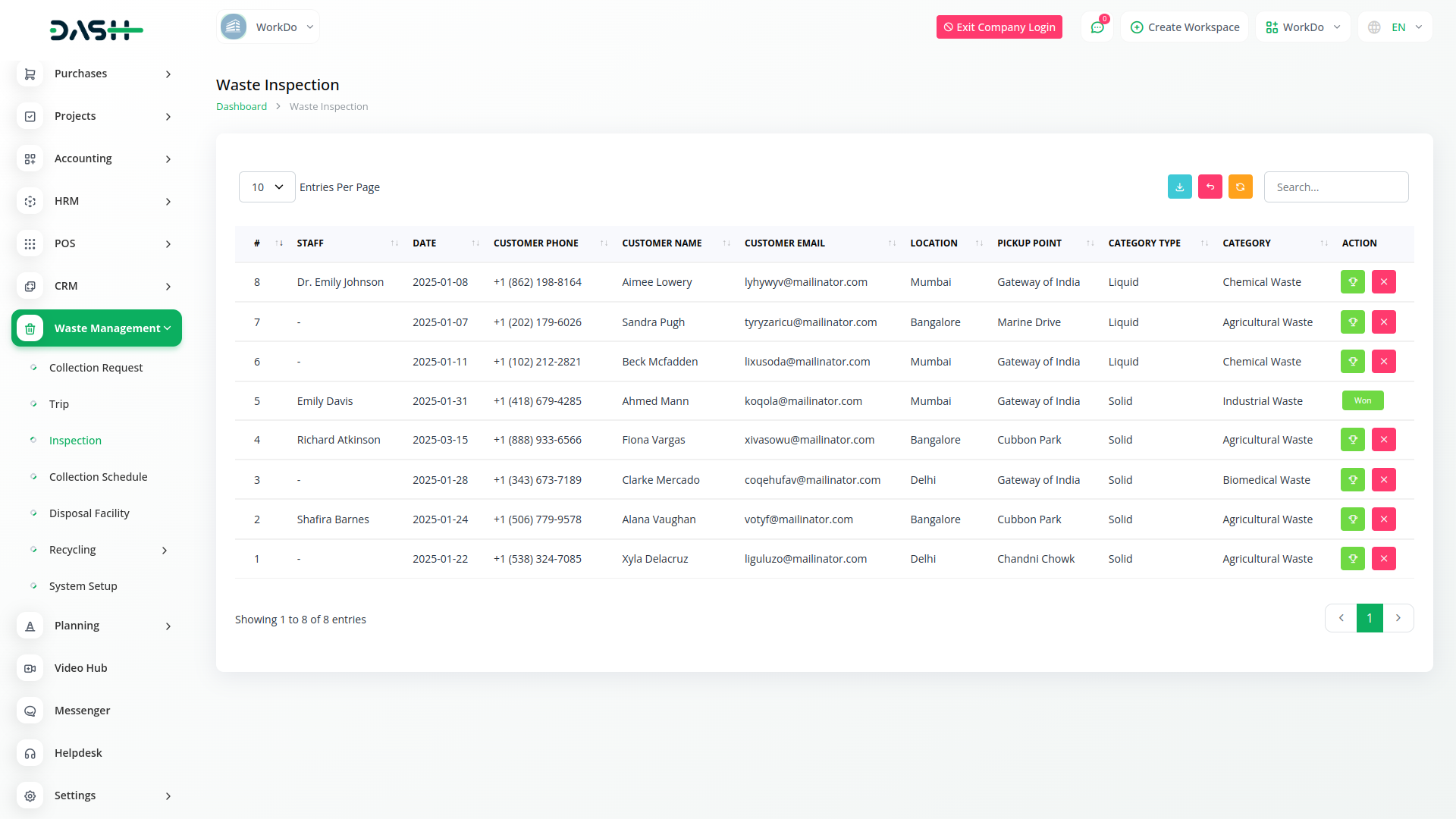 Efficiently conduct inspections on collected waste to ensure quality and compliance, with the ability to mark inspections as "Passed" or "Rejected" based on predefined criteria