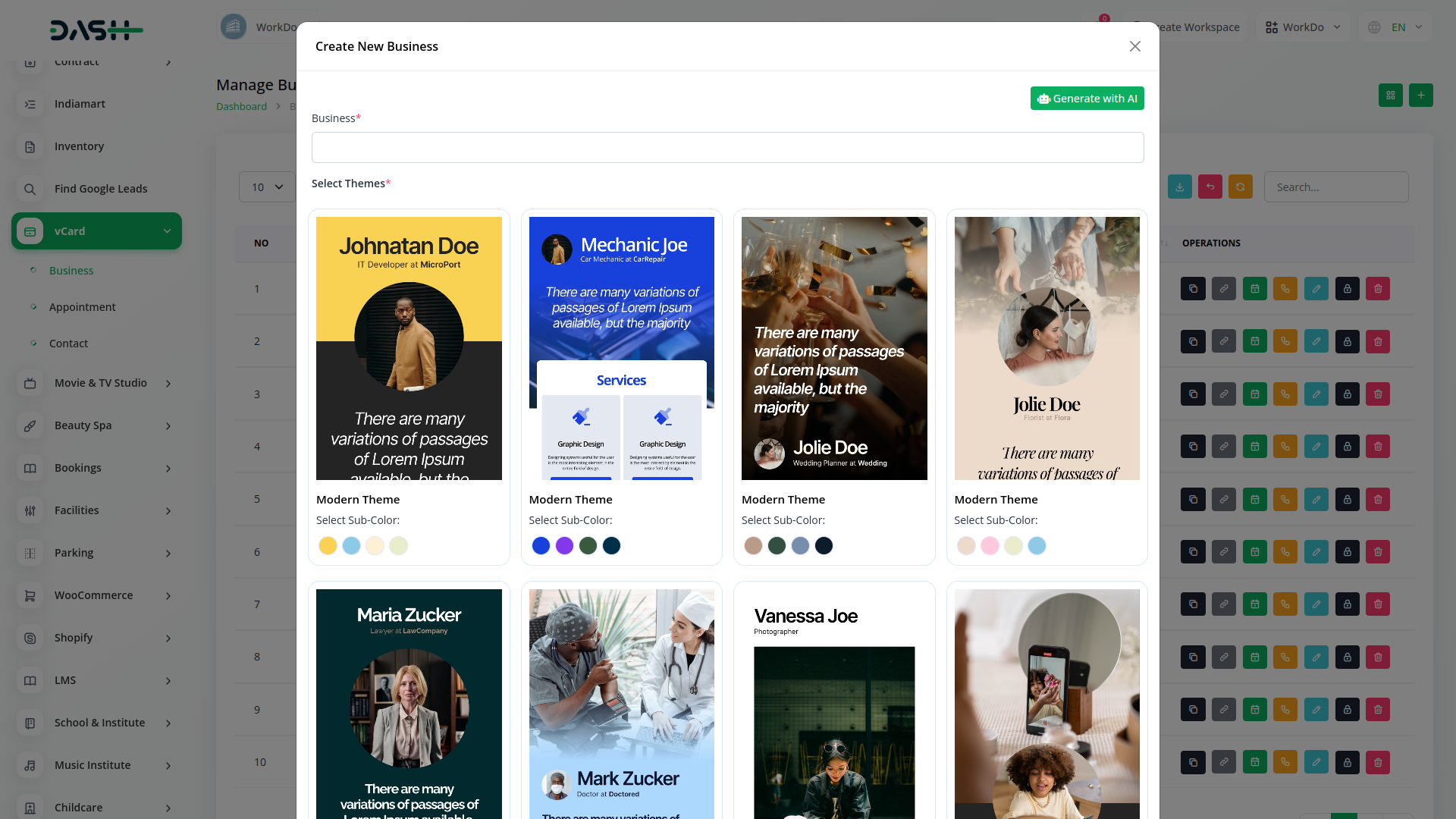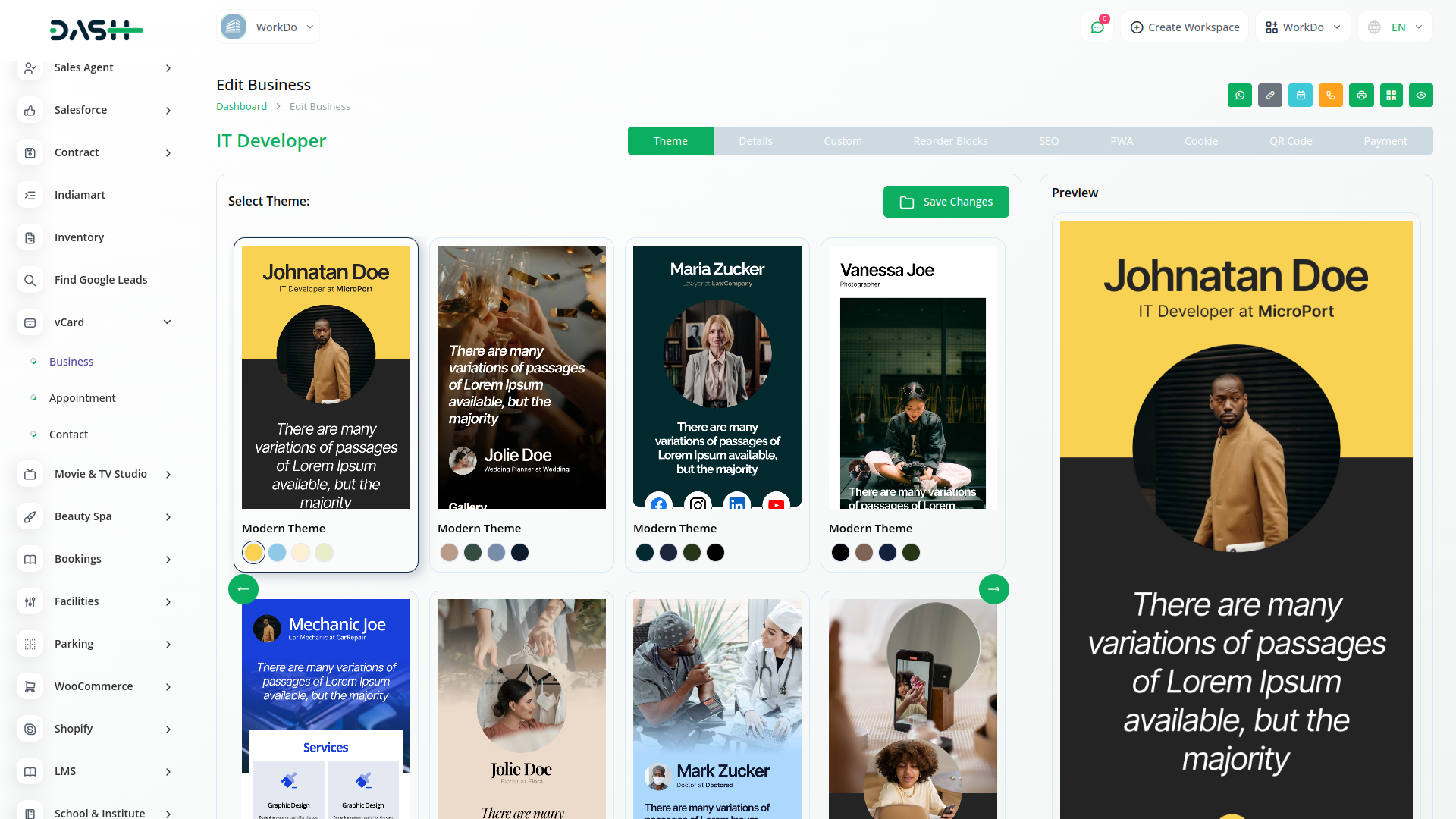 Customize your digital business card to match your brand.Choose from 21 beautiful themes with it`s unique colors.Add,modify update your business information quickly and easily.